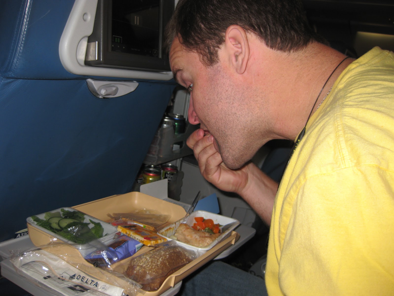 Our gourmet meal. Todd seemed to enjoy it! I on the other hand didn't care much for any of it. It was a good thing I had a slaw dog and onion rings from The Varsity in the ATL airport before we took off! :)